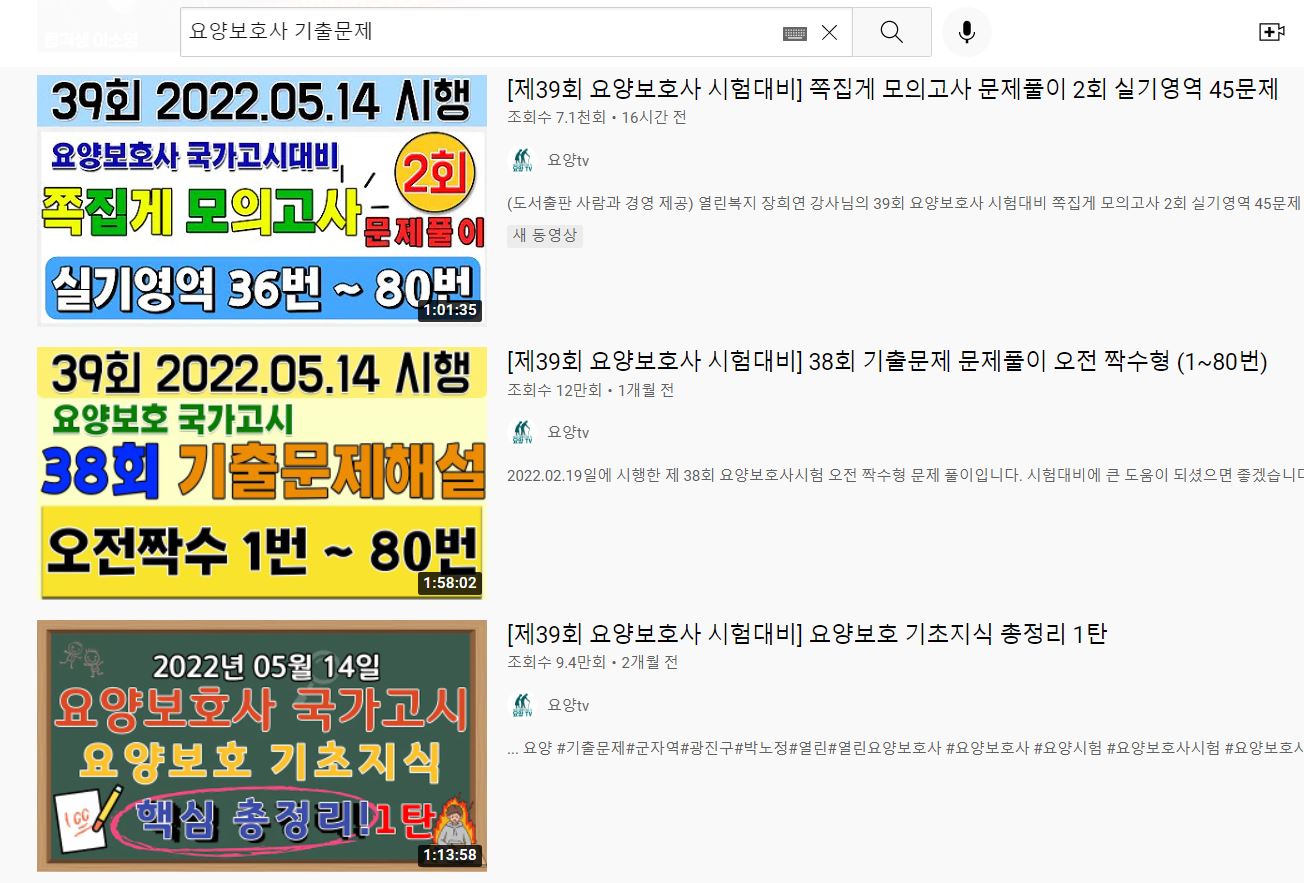 유튜브를 이용한 기출문제뿐 아니라