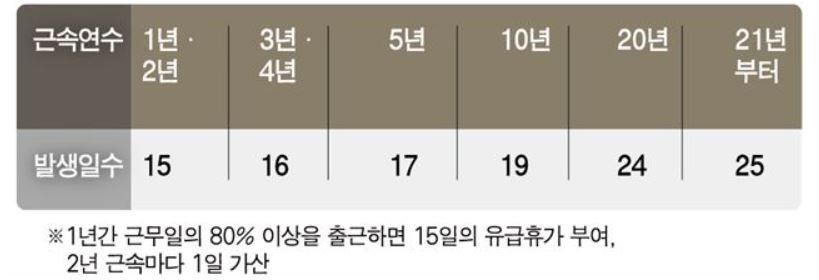 2년마다 연차가 1개씩 늘어납니다.