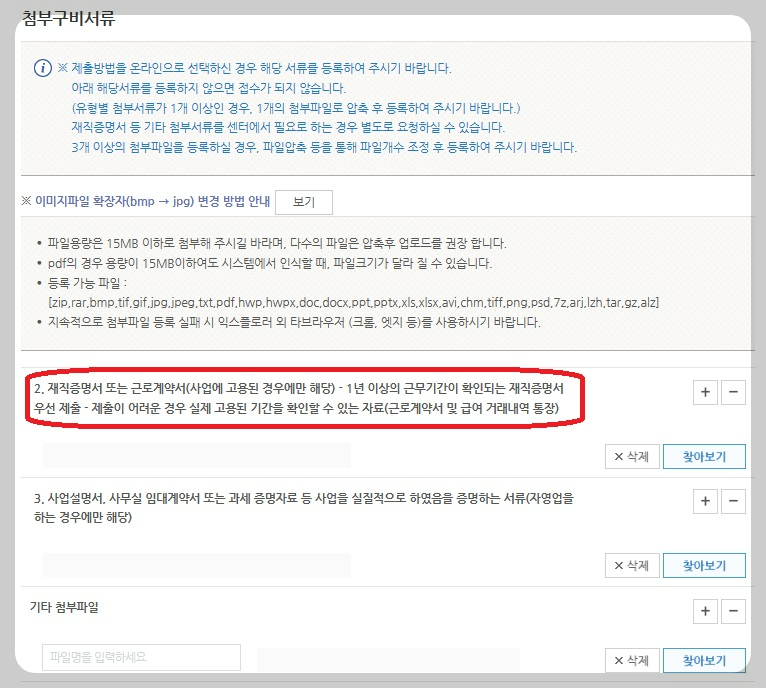 필수사항을 입력 후 필수서류를 입력하지 않으면 접수가 되지 않습니다. 재직증명서 또는 근로계약서를 제출하여 주면 신청은 끝이 납니다. 이상 실업급여 조기취업수당 신청방법과 금액에 대해 알아보았습니다.