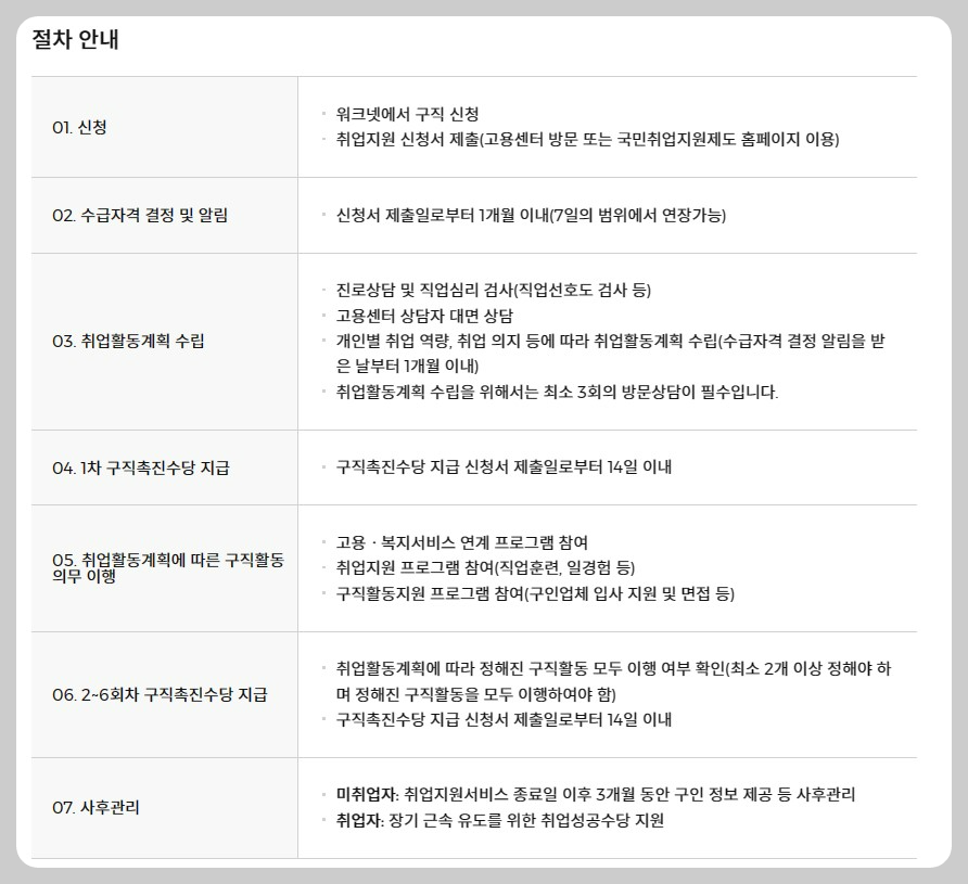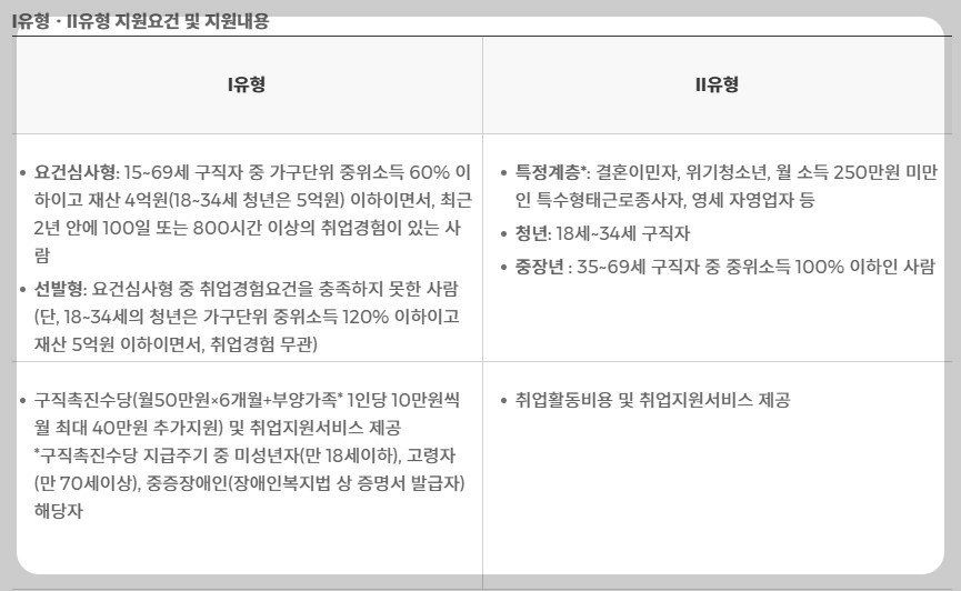 ※ I유형은 '구직촉진수당'과 취업지원서비스' 제공받습니다.