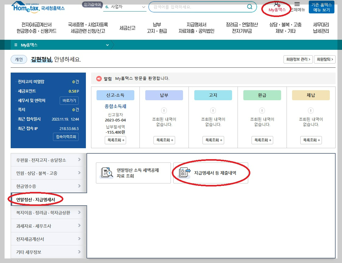 연말정산 환급금을 조회하는 방법은 아래와 같습니다.
