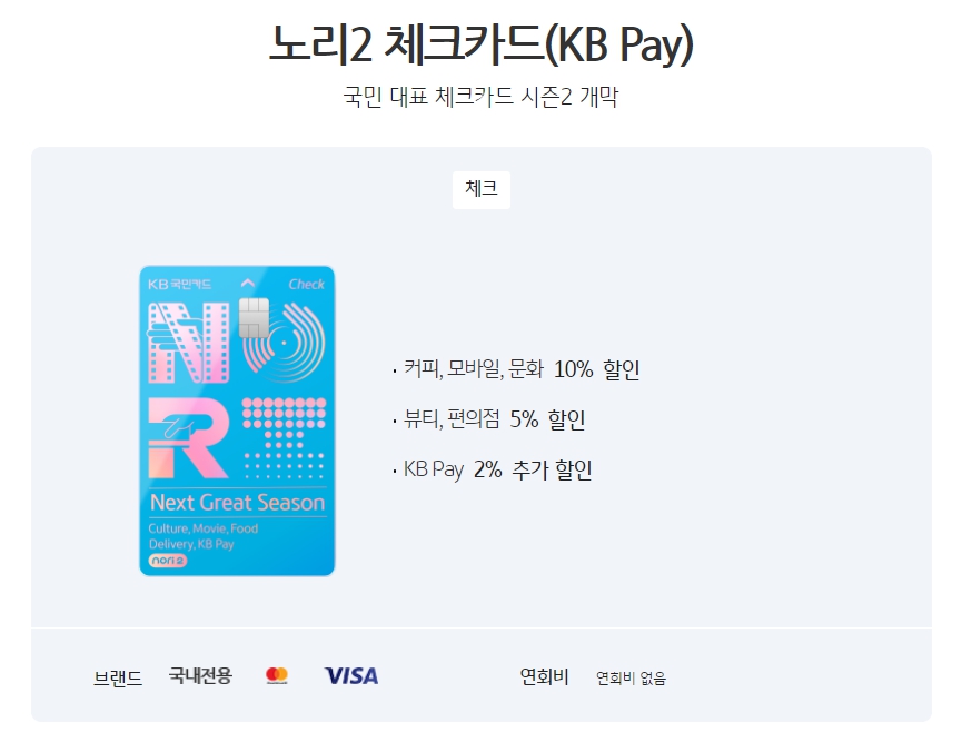 신용카드를 쓰기 부담스러워 하는 대학생이나 사회초년생, 직장인이라면 <노리 2 체크카드>를 적극 추천드립니다.