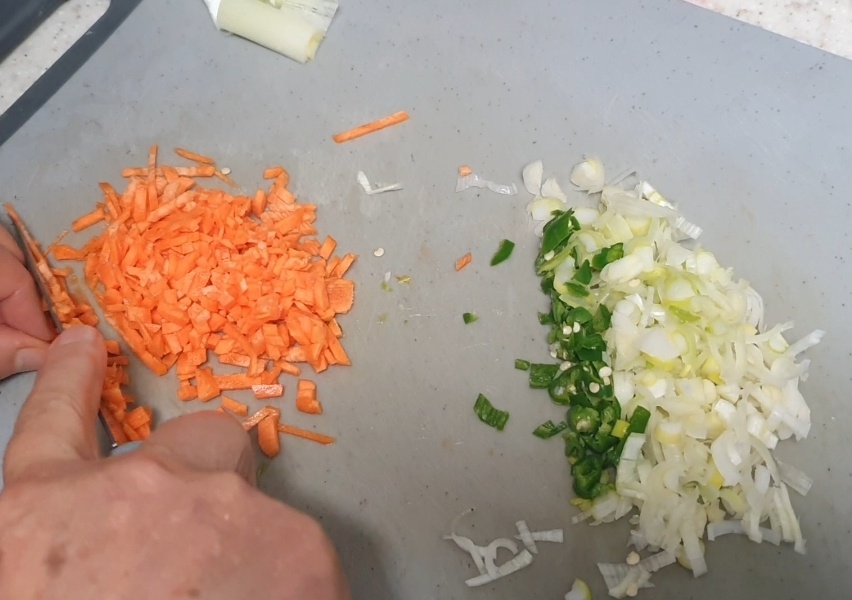 2. 양념장에 들어가 파,땡초,당근을 모양낼 정도로만 썰어주세요.