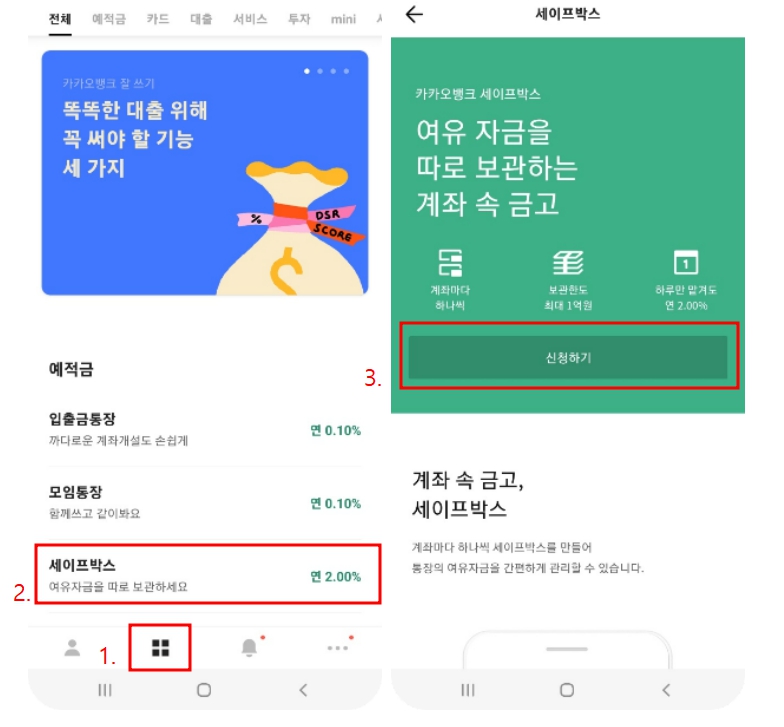 카카오뱅크 세이프박스 가입방법(모바일)