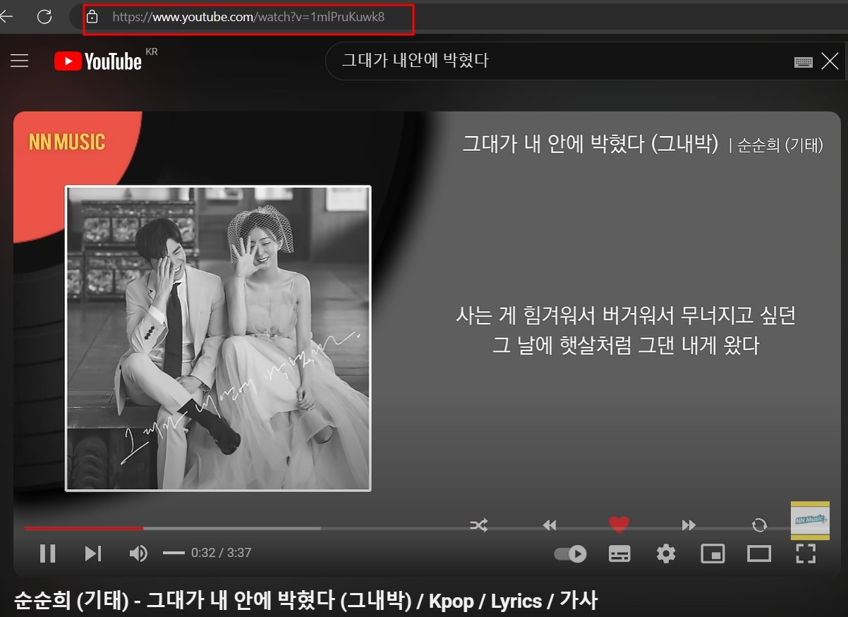 정말 간단하게 검색되지 않나요? 제가 원하는 동영상이 바로 제일 앞에 나와있습니다. 비디오 화면으로 다운로드하셔서 스마트폰에 저장하시면 됩니다. 그럼 두번째 방법으로 음악파일과 동영상을 다운로드하여보겠습니다. 우리가 보는 유튜브화면에서 링크를 먼저 복사해 오겠습니다.