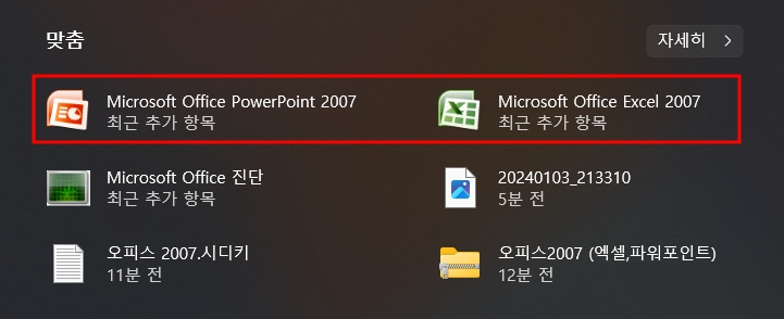 15. 설치가 잘 되었는지 윈도를 열러 보니 최근 추가항목으로 엑셀과 파워포인트가 있습니다. 엑셀 무료다운로드 하려다가 파워포인트까지 무료다운로드 설치가 가능해졌습니다.