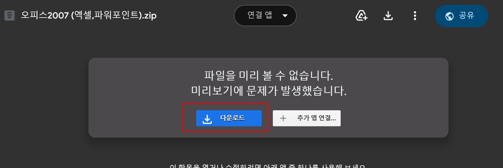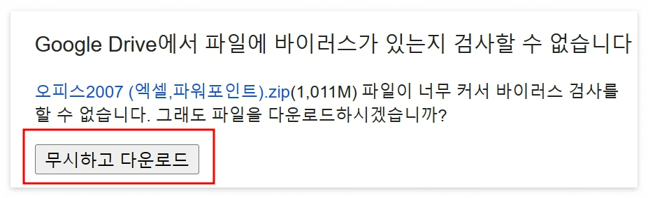 3. 바이러스 검사할 수 없습니다. 무시하고 다운로드해줍니다.