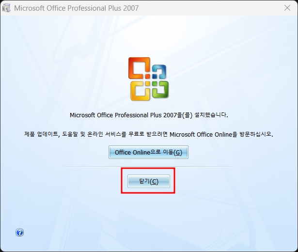 엑셀 무료 다운로드 2007 버전 빠르게 설치가 되었습니다. 5분도 채 되지 않아서 이렇게 쉽게 다운로드할 수 있으니 최신버전이 아니더라도 엑셀 2007 버전으로 맘 편히 쓸 수 있으니 천천히 따라 해보시면 좋겠습니다.