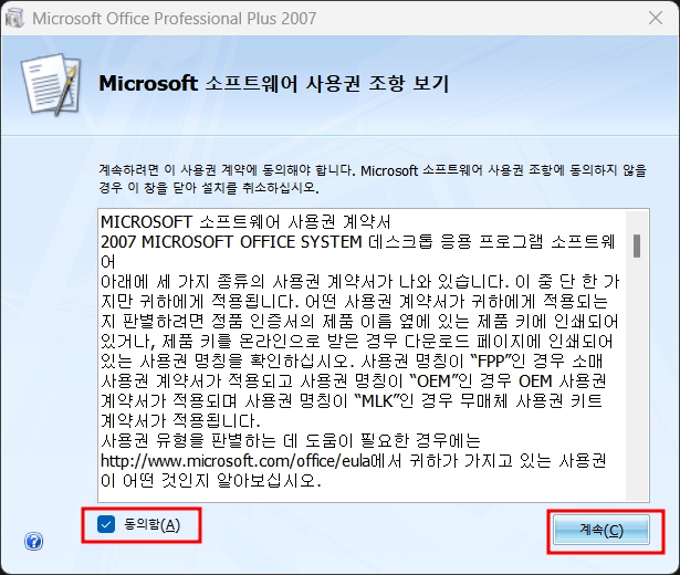 10. 소프트웨어 사용권에 동의해 주고 계속을 누릅니다.