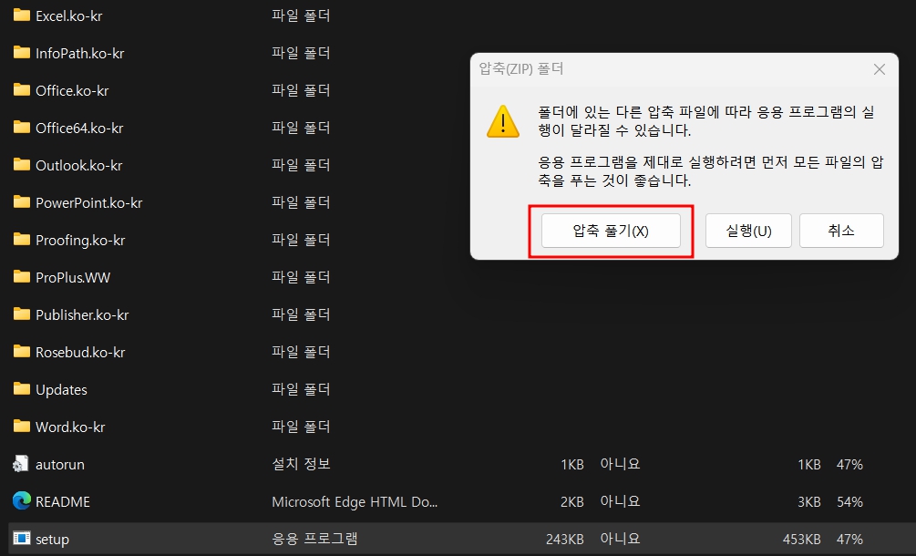 4. 아래와 같은 화면이 나오면 setup 파일을 눌러서 실행해 봅니다.
