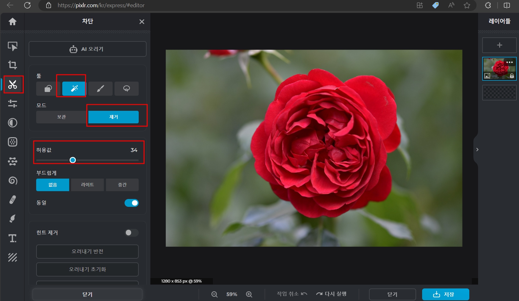 픽슬러에서 누끼 따는 방법