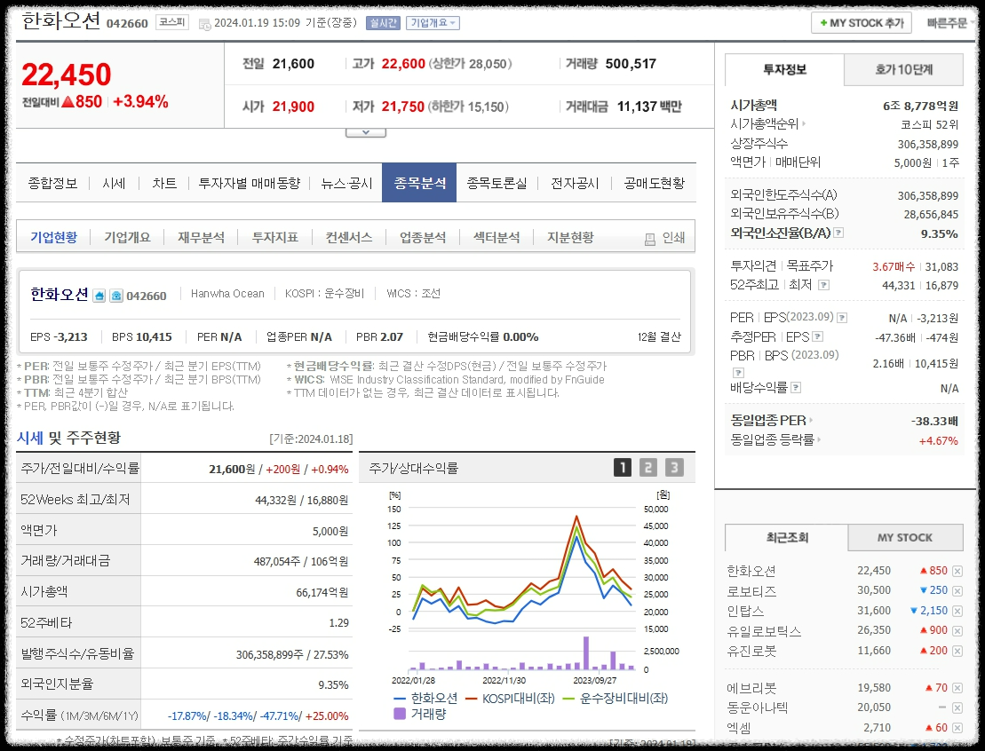 한화오션 주가 종목 분석