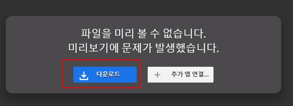 미리보기에 문제가 발생했다고 하는 문구는 무시하고 그냥 다운로드를 진행해 주시면 됩니다.