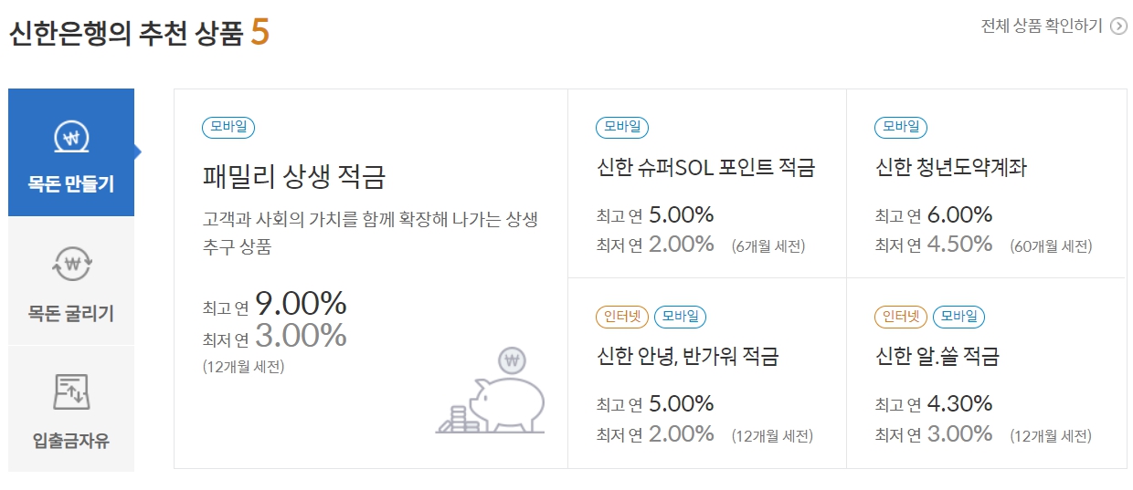 신한은행 정기 적금금리 비교하기