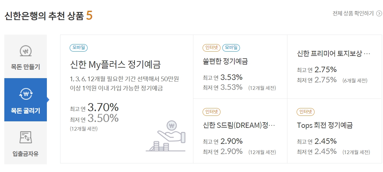 신한은행 정기 예금금리 비교하기