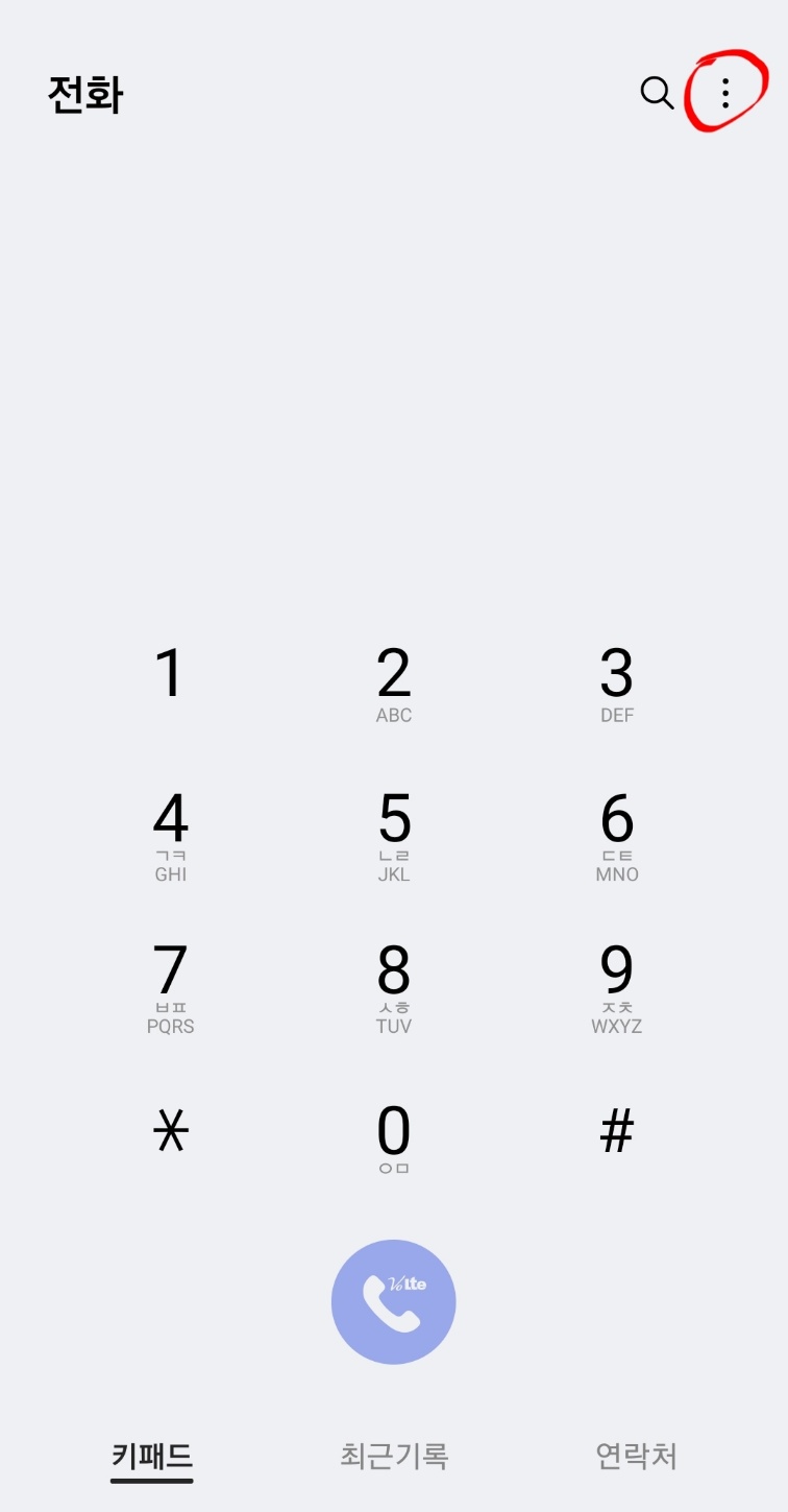 - 왼쪽 하단 키패드 메뉴에서 오른쪽 상단 점 세 개 누르기