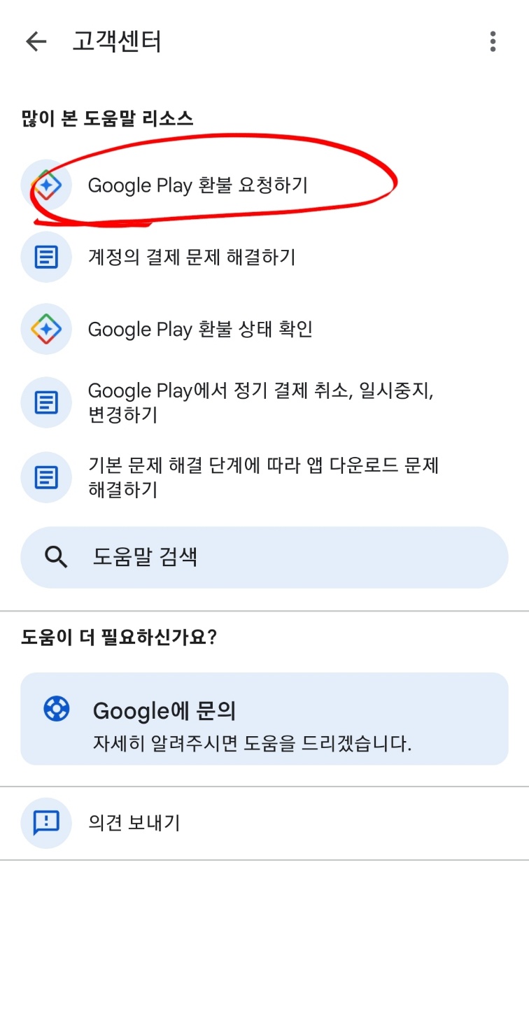 - 상단 구글플레이 환불요청하기