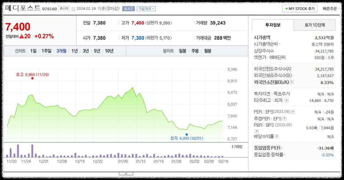 메디포스트는는 2000년에 설립되어 2005년에 코스닥 시장에 상장되었으며 현재는 제대혈 보관, 건강기능식품 판매, 그리고 줄기세포치료제의 개발 및 판매 사업을 영위하고 있습니다. 국내에서 제대혈은행 사업자로 1위의 위치를 차지하고 있으며 R&D 파이프라인을 통해 다양한 치료제를 보유하고 있습니다. 이 중에는 무릎 퇴행성관절염 치료제인 카티스템, 기관지폐이형성증 치료제인 뉴모스템, 알츠하이머병 치료제인 뉴로스템 등이 있습니다. 제대혈은행 사업을 중심으로 다양한 분야에서 활발한 사업을 전개하고 있으며 연구 및 개발을 통해 혁신적인 치료제를 개발하고 세계적인 기업들과도 협력 관계를 맺고 있습니다.