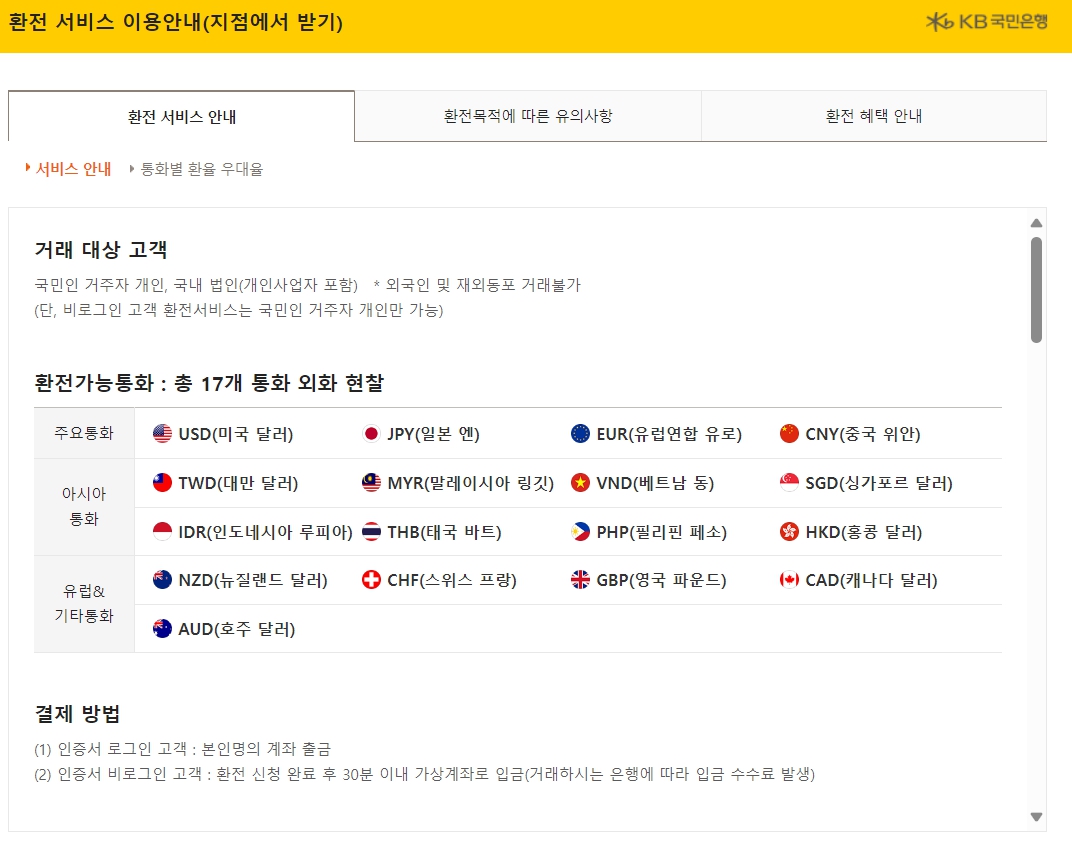 국민은행 환전 방법, 수수료 100% 면제 혜택.
