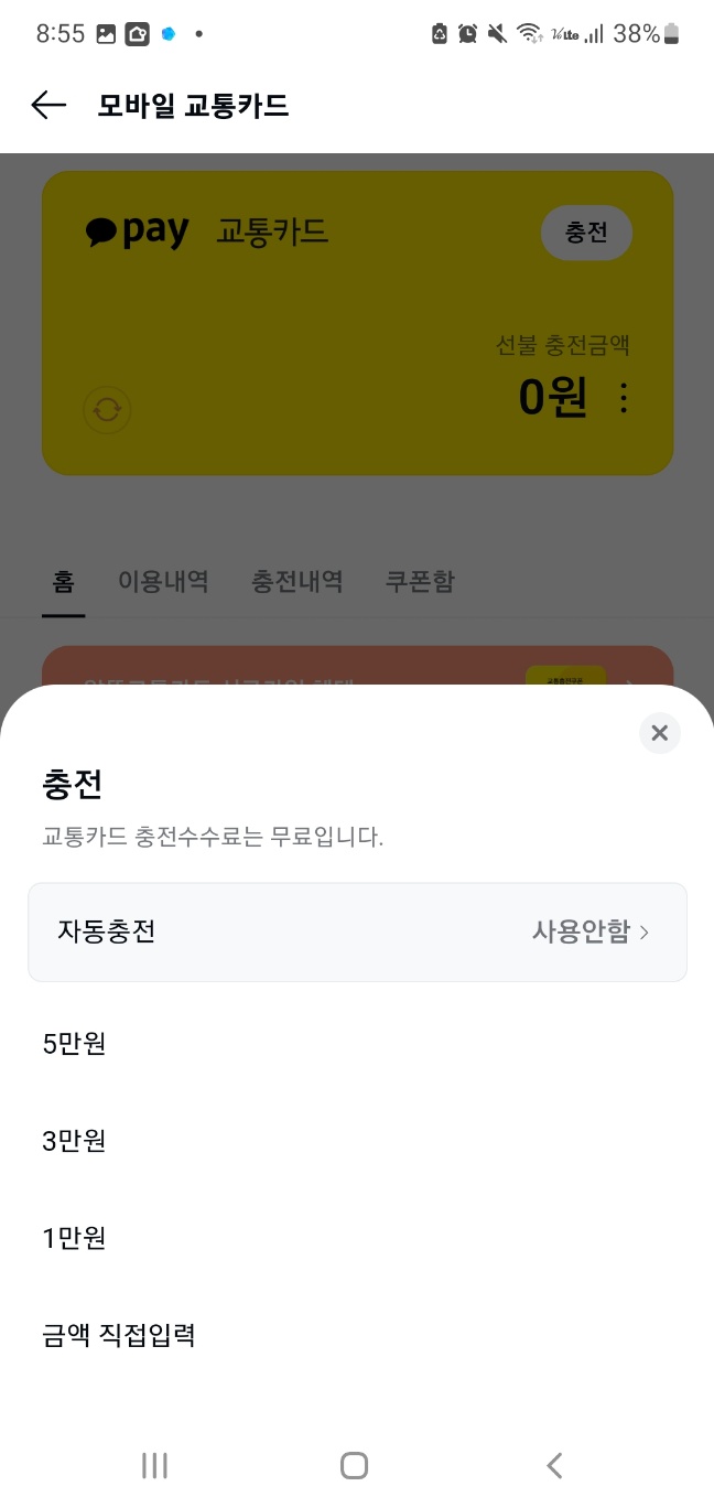 카카오페이 모바일 교통카드 충전하는 방법
