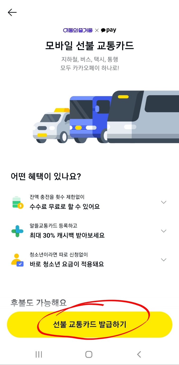 카카오페이 모바일 교통카드 발급하기
