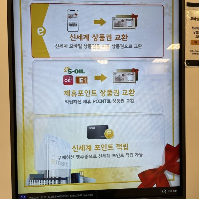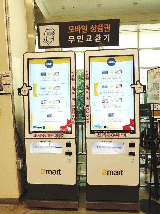 신세계 모바일 상품권을 선물로 받으셨다면 현장에서 지류로 교한해서 사용해야 하는데 신세계나 이마트에서 정해진 교환처에서 교환하면 되는데 백화점이나 이마트 고객센터를 직접 방문하거나 모바일상품권 무인교환기를 이용하셔야 합니다. 본인이 사는 지역의 이마트를 방문하시면 고객센터 근처에 모바일상품권 무인교환기를 이용하는 방법입니다.