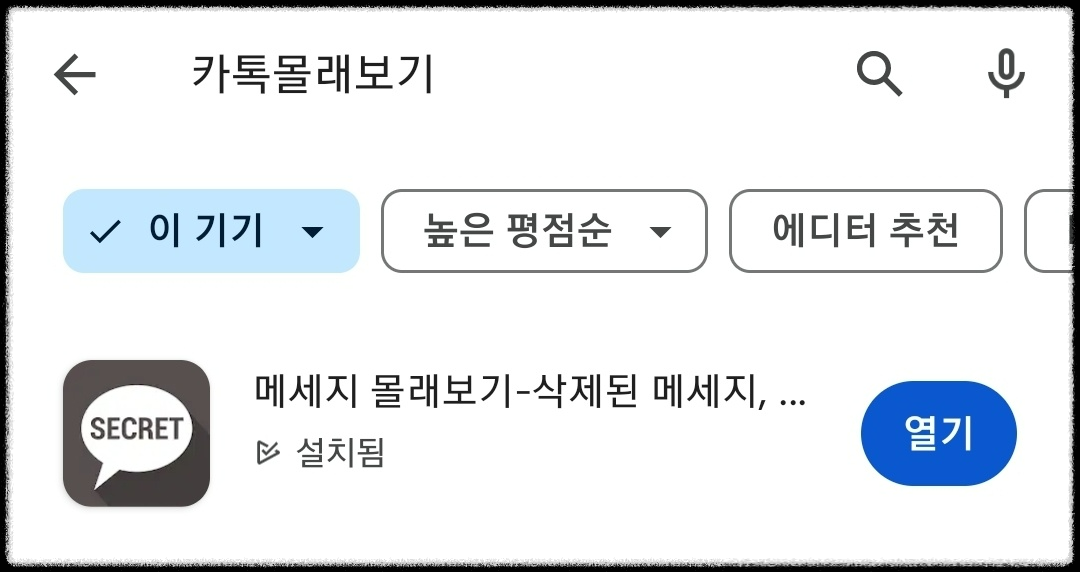 말 그대로 메세지 몰래보기 앱이며 플레이스토어에서 설치하시면 됩니다. 카톡 몰래 보기라고 치셔도 나옵니다.