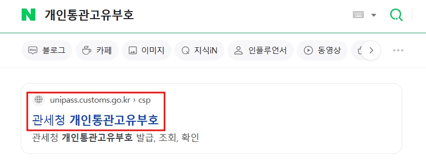 - 인터넷 검색창에서 '개인통관고유부호' 검색