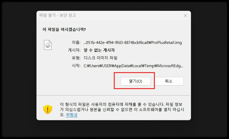 ProPlusRetail.img프로그램을 저장이 되면서 약간의 시간이 필요합니다.